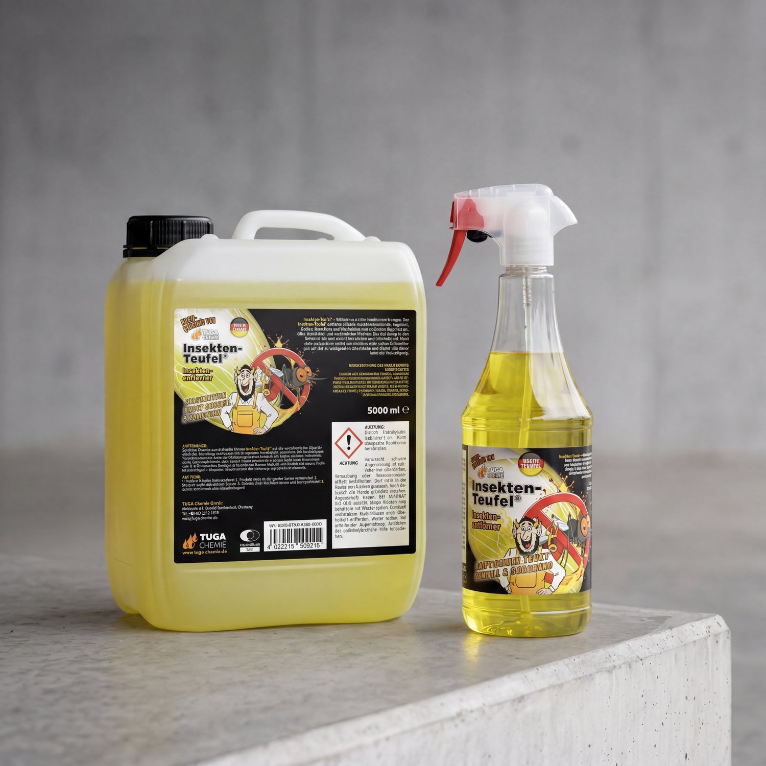 The Insect-Devil is the right choice for anyone who drives several hundred kilometers of highway or country road per week in summer and regularly struggles with fresh insect infestations. TUGA Chemie produces the cleaner in Germany as part of the Devil line and has kept the formula constant for decades — anyone who worked with the yellow gel in the 2000s gets chemically the same product in the current bottle today.