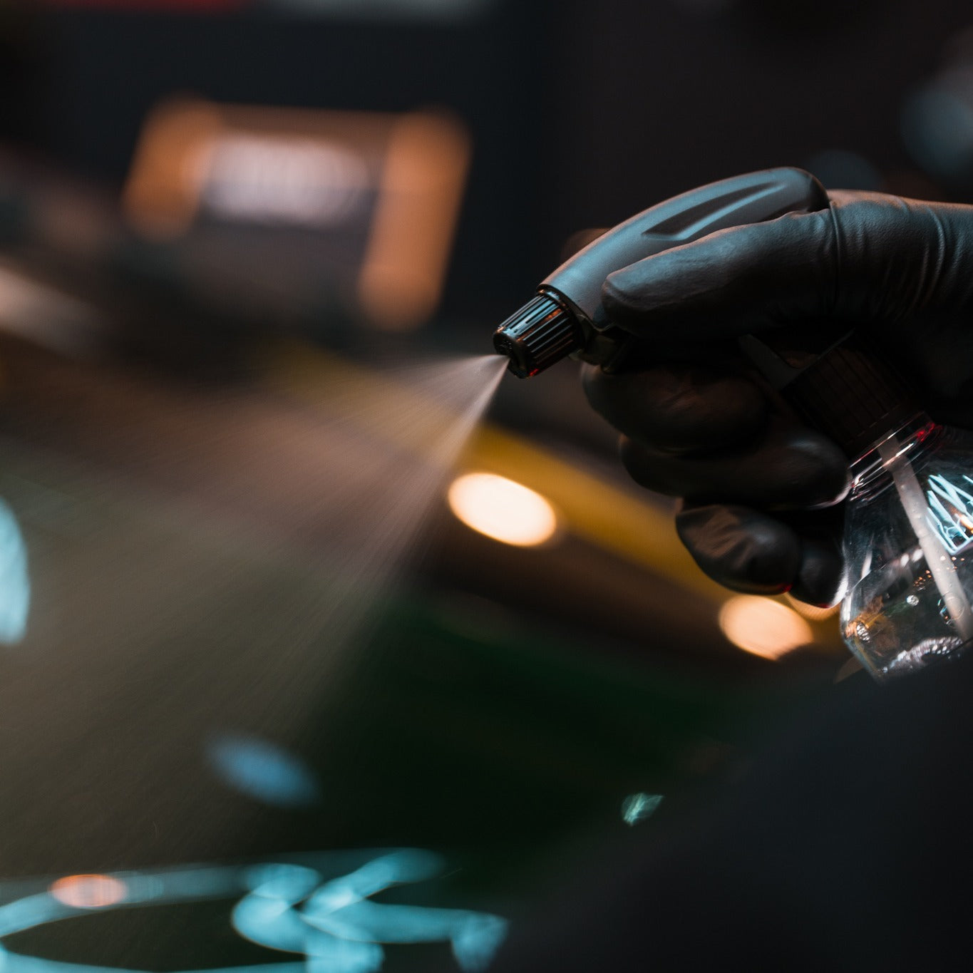 • Sprühe 2-3 Spritzer des Reinigers direkt auf die Glasfläche oder auf ein Mikrofasertuch.