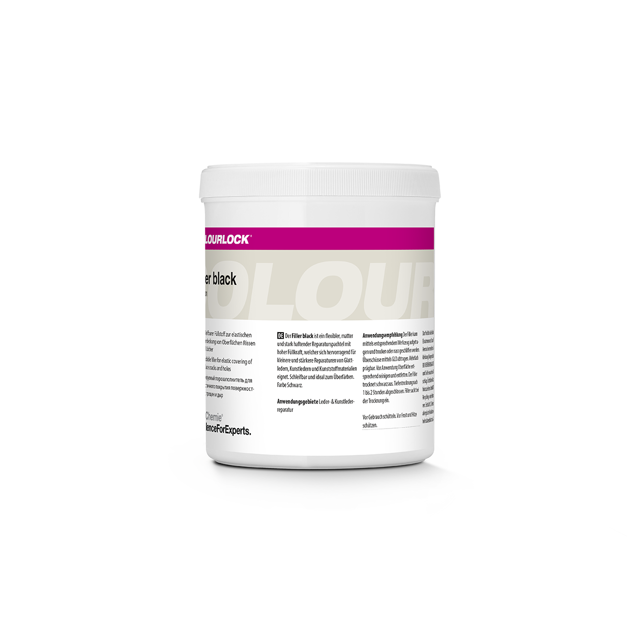 COLOURLOCK Filler (Black) ist ein hochwertiger, schwarzer Leder-Füllstoff für Reparaturen an dunklen und schwarzen pigmentierten Glattledern. Er eignet sich ideal zum Ausgleichen von Kratzern, Rissen, Schürfungen, Abnutzungsstellen und leichten Kantenbeschädigungen. Durch seine schwarze Pigmentierung fügt sich der Filler optisch harmonisch in dunkle Lederoberflächen ein und erleichtert den anschließenden Farbaufbau erheblich — perfekt für Automotive-Leder, Möbel, Taschen, Schuhe und Interieurteile.