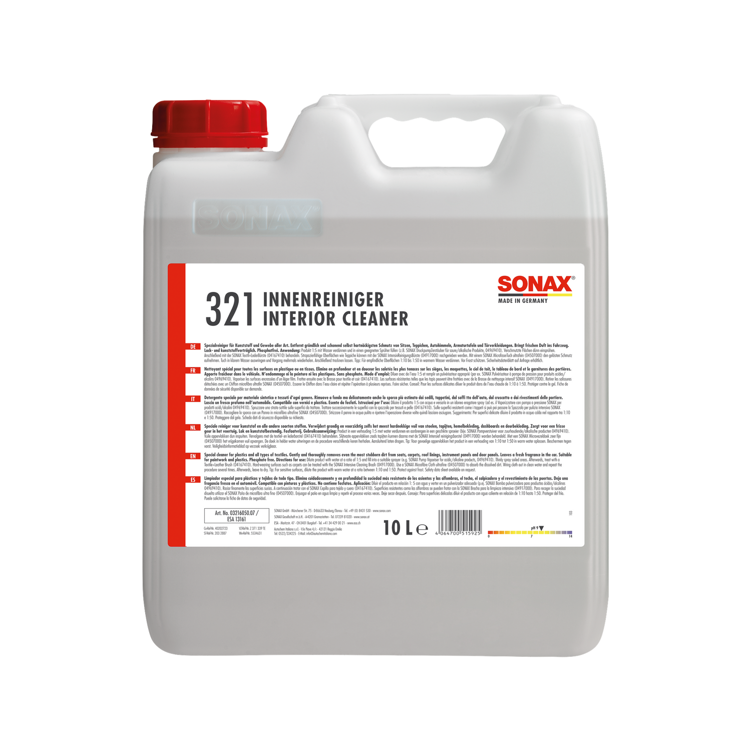 Spezielles Reinigungskonzentrat für alle Flächen im Fahrzeug. Es entfernt gründlich und schonend Verschmutzungen an Kunststoffen und Textilien wie z. B. Innenverkleidungen, Sitzen, Stoffbezügen und Himmel. Bringt frischen Duft ins Auto. SONAX ist ein deutscher Hersteller aus Neuburg an der Donau mit über 70 Jahren Erfahrung in der Fahrzeugpflege. Die PROFILINE-Produkte durchlaufen strenge Qualitätskontrollen und werden in Deutschland produziert — ein Qualitätsmerkmal, das im Profi-Bereich geschätzt wird.