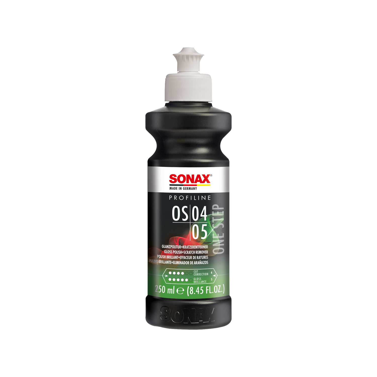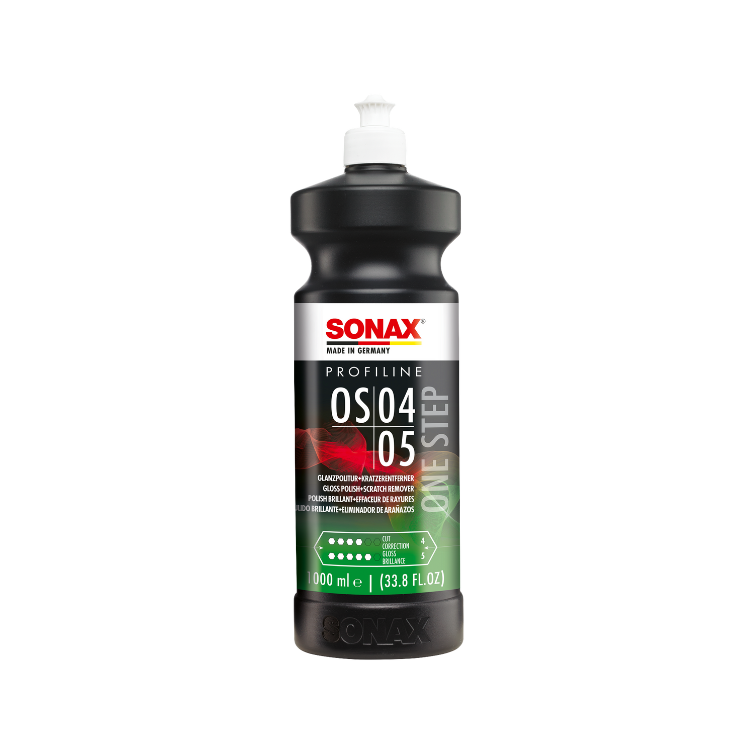 Was leistet die SONAX PROFILINE OS "04-05"? Die One-Step-Politur kombiniert mittlere Schleifkraft mit hoher Glanzleistung — Kratzerkorrektur und Finishing in einem Arbeitsgang, silikonfrei und maschinengeeignet für professionellen Werkstatt- und Aufbereitungseinsatz.